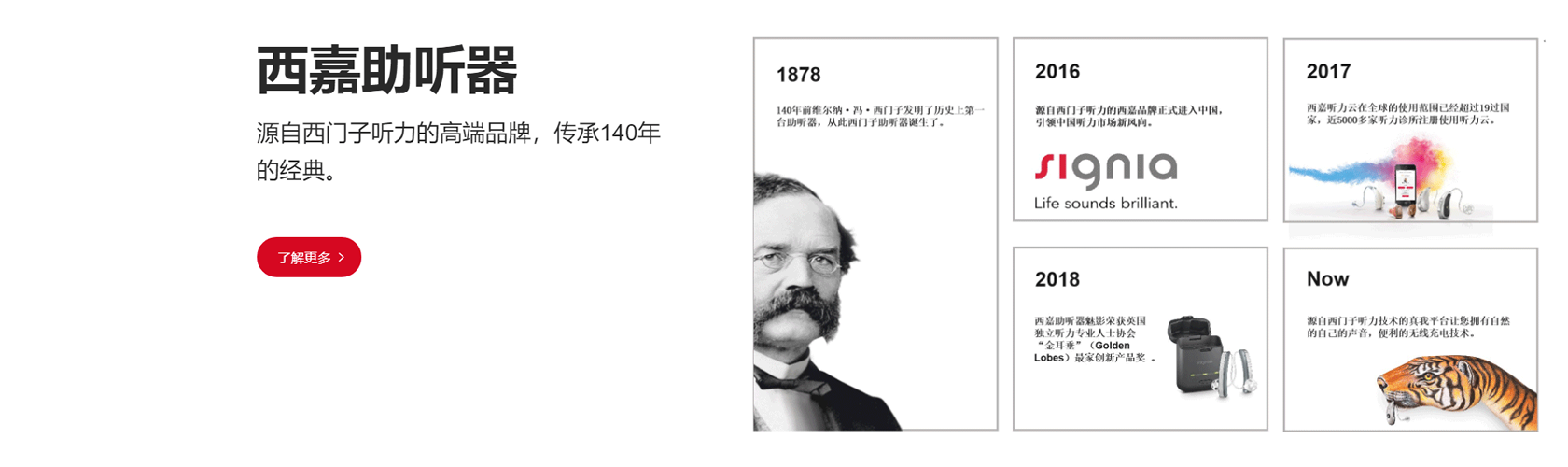 廈門悅聆聲聽力科技有限公司,德國西嘉助聽器廈門地區(qū)的授權服務商。公司經過十六年的發(fā)展,目前擁有多名國家職業(yè)三級和四級助聽器驗配師,助聽器驗配中心的服務網(wǎng)點目前分布在廈門、漳州和莆田等城市,“專業(yè)化的驗配專業(yè)化的服務”是公司每位驗配師一直堅持的職業(yè)原則和宗旨。西嘉助聽器源自西門子聽力,傳承140多年的經驗技術,在聽力研究、助聽器研發(fā)和生產等領域享有盛譽。其足跡遍布全球100多個國家和地區(qū),不斷創(chuàng)新,竭盡推動聽力行業(yè)發(fā)展。西嘉助聽器繼承了西門子聽力逾百年的科技精髓,擁有強大的研發(fā)創(chuàng)新能力。我們將利用這些先進的產品技術為廈門地區(qū)聽力損失患者提供專屬個人的聽力解決方案,為您解決聽力上的煩惱,重回有聲的精彩聽世界。